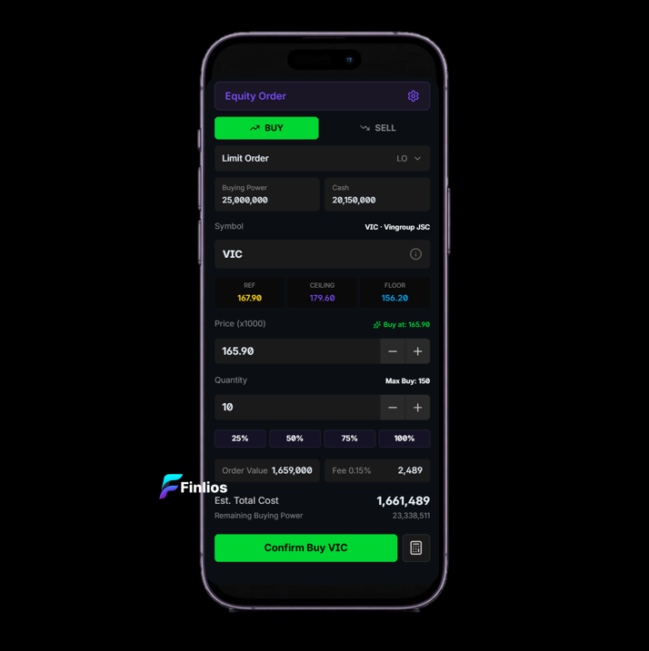 Sau tái thiết kế, Finlios đo lường thời gian vào lệnh rút ngắn 35–45%, mức độ hài lòng của nhà đầu tư tăng rõ rệt. Quan trọng hơn, hệ thống giao dịch mang một diện mạo mới: tối giản, trực quan và có chiều sâu, phù hợp với thói quen của nhà đầu tư chuyên nghiệp. Thiết kế tuân thủ các chuẩn UI/UX quốc tế trong lĩnh vực trading, giúp nền tảng không chỉ dễ dùng hơn, mà còn tạo cảm giác tin cậy, chuyên nghiệp và sẵn sàng mở rộng cho các sản phẩm tài chính cao cấp trong tương lai.